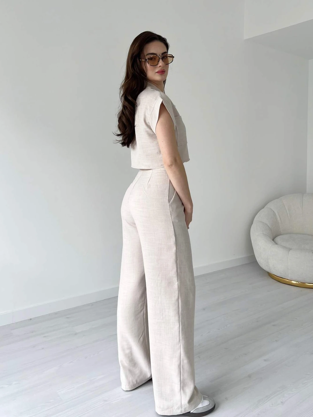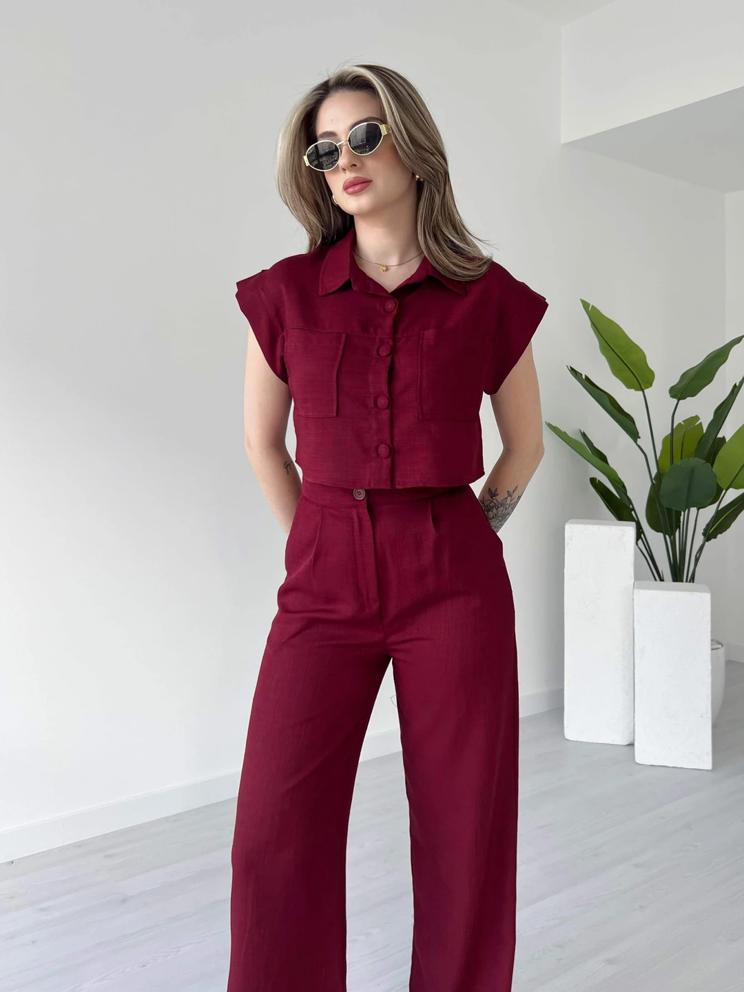 Taille portée par le mannequin : M Mensurations du mannequin : Taille : 174 cm, Poids : 62 kg, Poitrine : 85 cm, Taille : 66 cm, Hanches : 98 cm Type de tissu : Lin